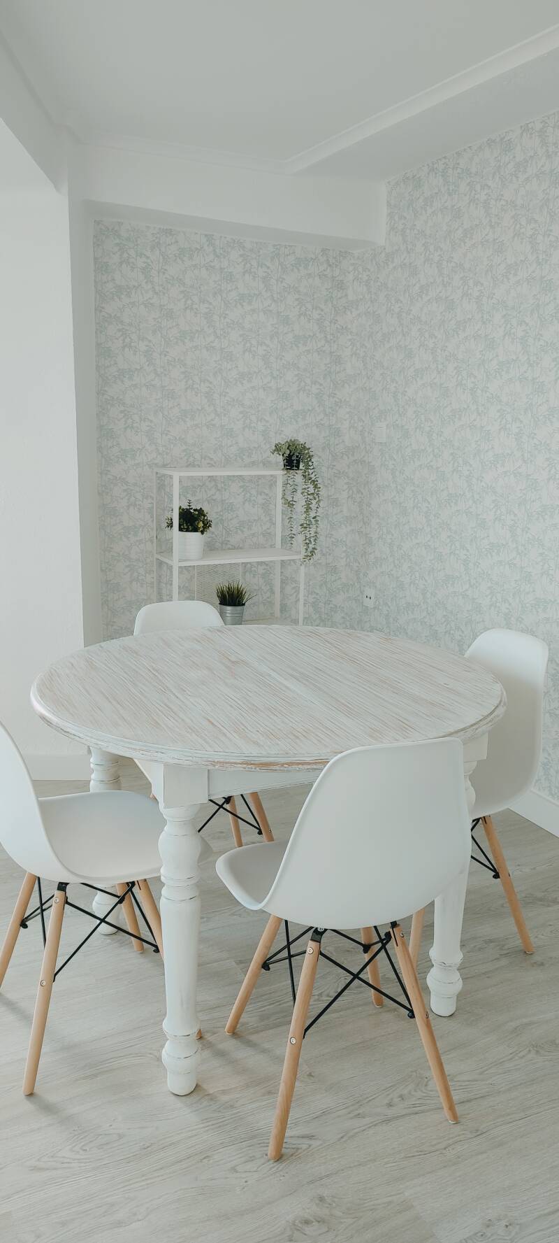 Nuestro consejo con las mesas es que las compres de madera maciza. Eso te va a permitir restaurarlas y recuperar un mueble de calidad con personalidad, que va a dar estilo a tu estancia y que va a durarte muchos años (y muchos inquilinos). Hemos comprado y recomendado multitud de mesas, pero os dejo está pieza por lo común que es, para que veáis las posibilidades que pueden llegar a tener. En este caso la clienta la pintó (patas en blanco y el sobre con una pátina blanca) y la combinó con sillas modernas en blanco y madera.