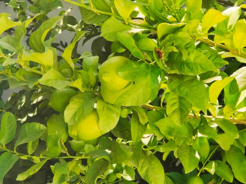 Limonero, naranjo, mandarino... Da igual. Son excelentes para el sol. Soportan el calor como ninguno y encima te ofrecen frutos y aroma (el azahar). Pocos frutales resisten el calor como los cítricos. Sus hojas son alegres y sus frutos muy ornamentales.