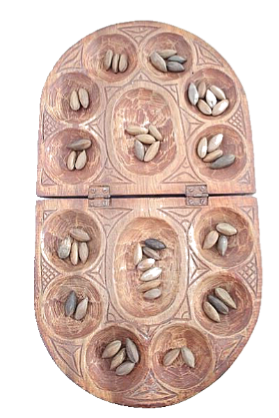 Viví un año en Camerún, en la selva. Cuando paseaba por los caminos polvorientos o llenos de barro, según la estación de lluvia, me encontraba con frecuencia a mayores y jóvenes jugando en las puertas de sus casas con semillas de cacao y una tabla rasa con hendiduras. Pese a que preguntaba con frecuencia las reglas del juego, las respuestas en Ewondo no me lo dejaban muy claro. Pero antes de volver, encontré en las artesanías de la capital, un ejemplar del juego que hoy sé, se llama Awalé. Disfruté regateando su precio en francos cfs (a los africanos les encanta el teatro del regateo) y lo traje conmigo. Lo conservo con cariño como recuerdo de esas tardes eternas donde sol iba cayendo y las manos soltaban las semillas sobre la madera suscitando las risas y comentarios de los dos participantes ¿Sabías que es un juego matemático?