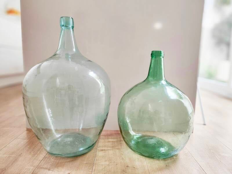 Hace diez años las damajuanas no estaban tan cotizadas y yo conseguí mi enorme damajuana alemana de zumo de manzana por tan sólo 15 euros, en un mercadillo inmenso de Múnich. Ésta llevaba además un soporte de madera que aún se conservaba y he utilizado como mesa exterior durante años. La segunda damajuana que tengo, la encontramos en nuestra casa de Sevilla antes de reformarla. Se la pedí al dueño que vendía la casa, Antonio, y nos la regaló. De manera que, cuando miro ambas, me recuerdan mi pasado y mi presente. Me gusta que mi hogar cuente historias ¿y a ti?